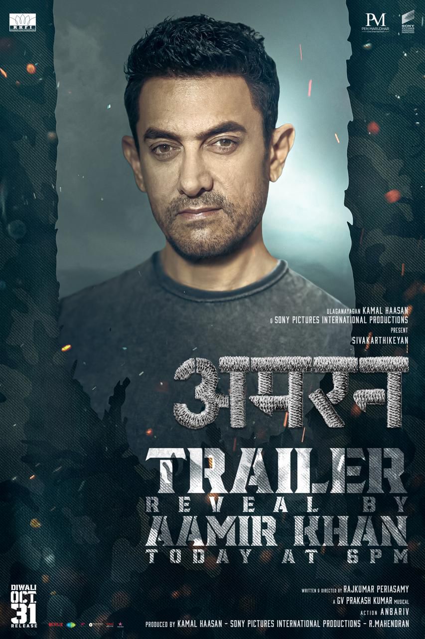 Aamir Khan is all set to unveil the official trailer of the much-anticipated film ‘Amaran,’ starring Sivakarthikeyan and Sai Pallavi. Directed by Rajkumar Periasamy, the film has already created a massive buzz across the country. The trailer release has garnered further excitement with the announcement that Kamal Haasan will join hands with Aamir Khan, Nimma Shivanna, Nani, and Tovino Thomas to amplify the reach of the trailer reveal across different regions, underlining the pan-Indian appeal of ‘Amaran.’