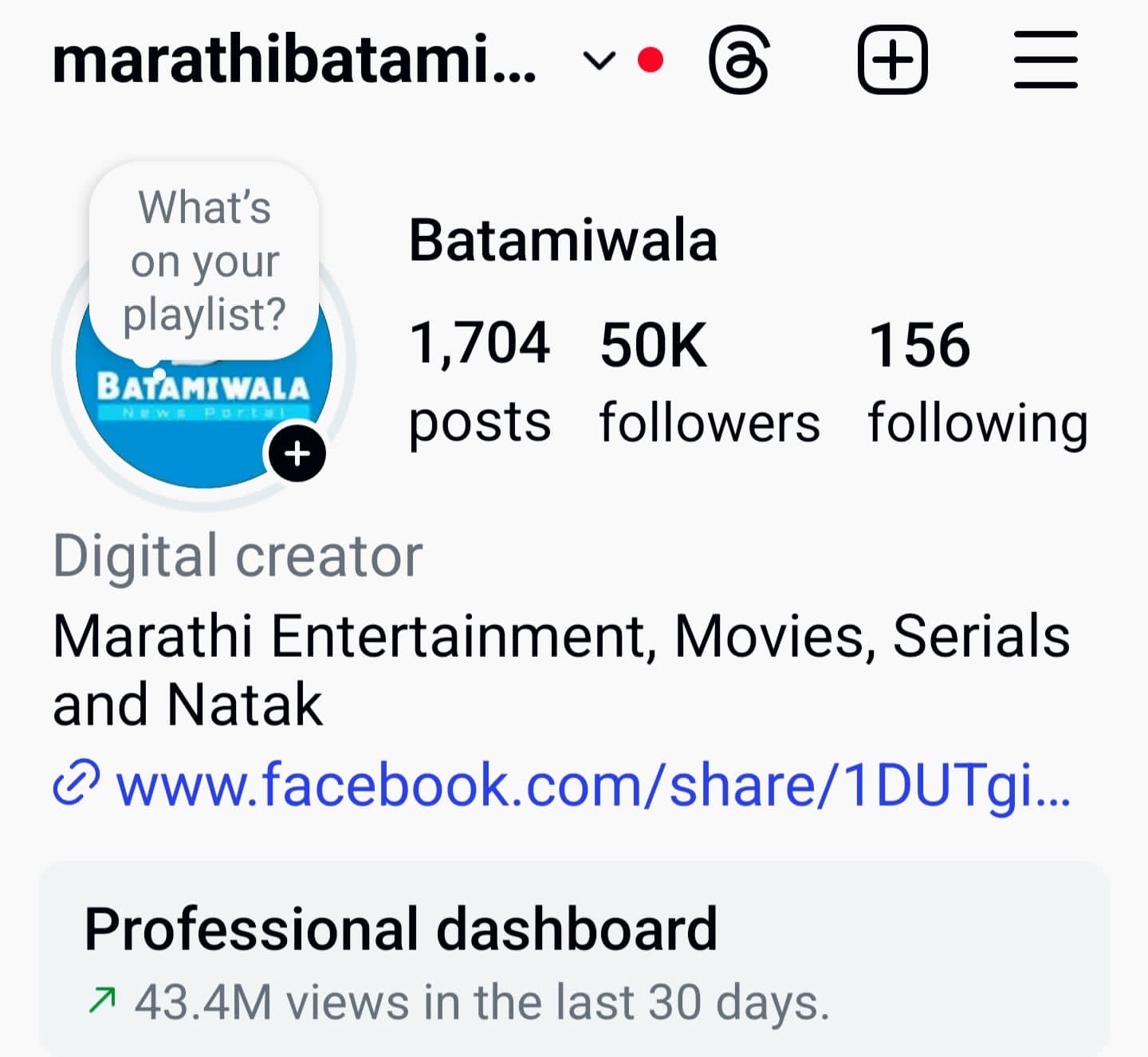 The platform’s engaging content has struck a chord with audiences, as reflected in its impressive 43.4 million reel views in the last 30 days. This rapid growth highlights Batamiwala’s strong presence in the Marathi digital entertainment space.