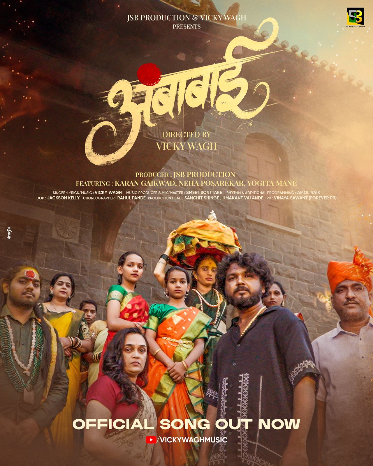 After directing superhit songs like Avadhoot Gupte’s “Pavan Jevla Kay” and the most sensational Gautami Patil’s “Cheez Lai Kadak,” director Vicky Wagh is back with a new song. On the occasion of Navratri, JSB Production has released “Ambabai,” directed by Vicky Wagh. The song is receiving appreciation from the audience. Karan Gaikwad, Neha Posarekar, Yogita Mane, Santosh Pakhare, and Vicky Wagh himself play key roles in the video. Vicky Wagh has written, composed, and directed the song, while JSB Production has produced it. The shooting took place in Kolhapur.