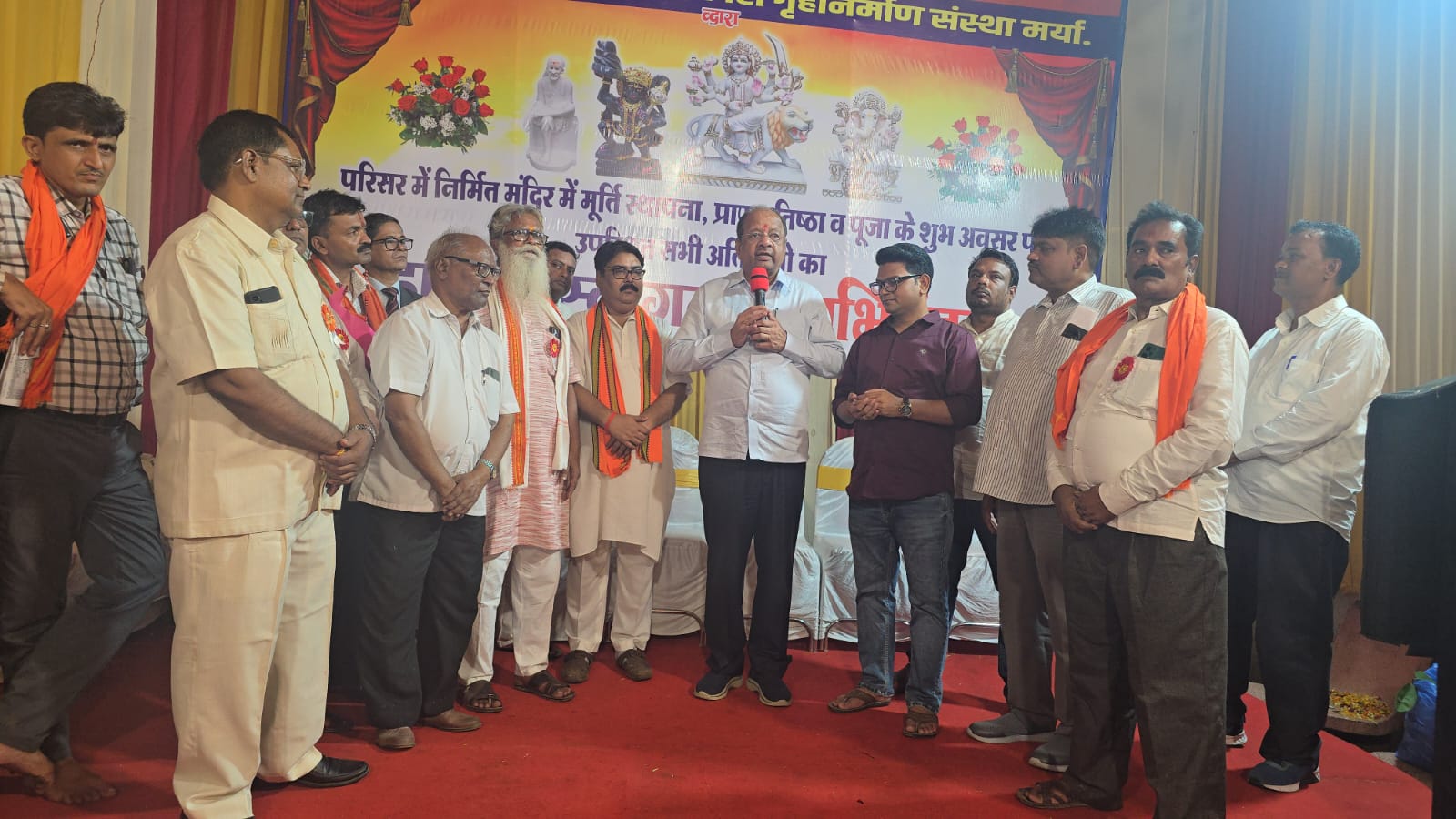 Kandivali: A grand temple has been constructed by Jai Bharat Kandivali SRA Society in the area. As part of the temple’s inauguration, a sacred idol Pran Pratishtha (ritual consecration) ceremony was organized for the divine idols of Lord Ganesha, Goddess Durga, and Lord Hanuman. Former Member of Parliament from North Mumbai, Gopal Shetty, attended the event held at Jai Bharat and Sai Darshan Society, Lalji Pada, New Link Road, Kandivali (West), and addressed the citizens present on the occasion.