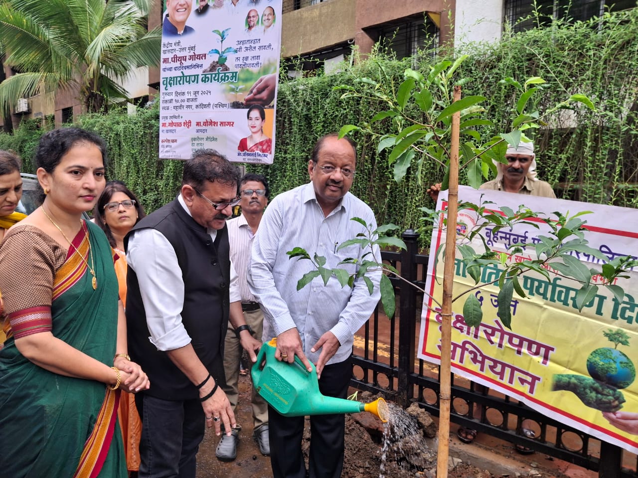 Kandivali: Former corporator of Ward No. 21 in Charkop Assembly, Pratibha Girkar, organized a tree plantation program in Mahavir Nagar, Kandivali. On this occasion, former Member of Parliament from North Mumbai, Gopal Shetty, marked his presence and inaugurated the plantation drive. He also planted a sapling himself and gave a conscious message to citizens about protecting the environment and keeping the earth enriched and adorned with greenery.